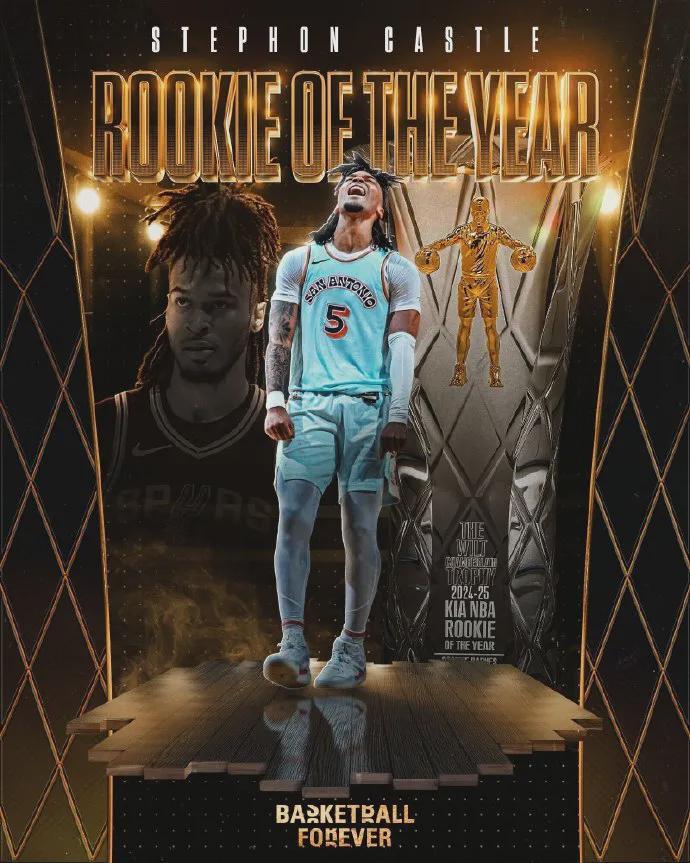 其实麦凯恩本来才是24-25赛季最强新秀,无奈该赛季仅打了23场比赛之后便遭遇左膝外侧半月板撕裂直接报销,最终由同届的首轮第四号秀&马刺后卫卡斯尔斩获最佳新秀奖。